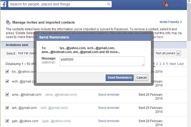 If you want to have more friends we recommend use the service "Mass add email" and create a new list for the invitation.